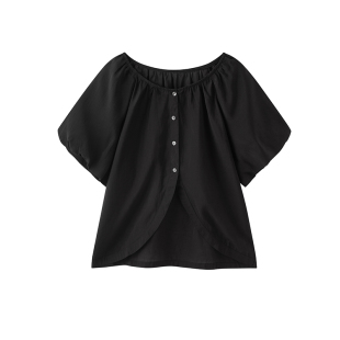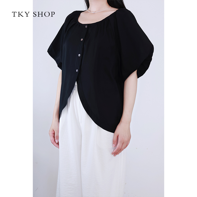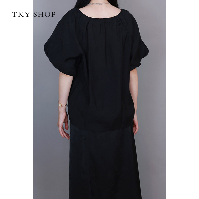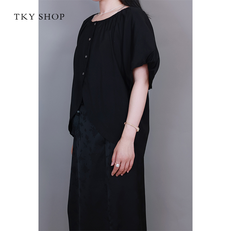 圆领上衣法式 TKY 穿搭春夏新款 薄上衣女黑色新中式 气质 SHOP短袖