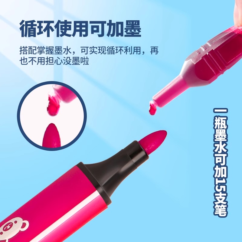 直液式 丙烯马克笔软头儿童可水洗小学生美术专用水彩笔不透色可叠色幼儿园画笔48色绘画24彩色笔炳稀笔芯60