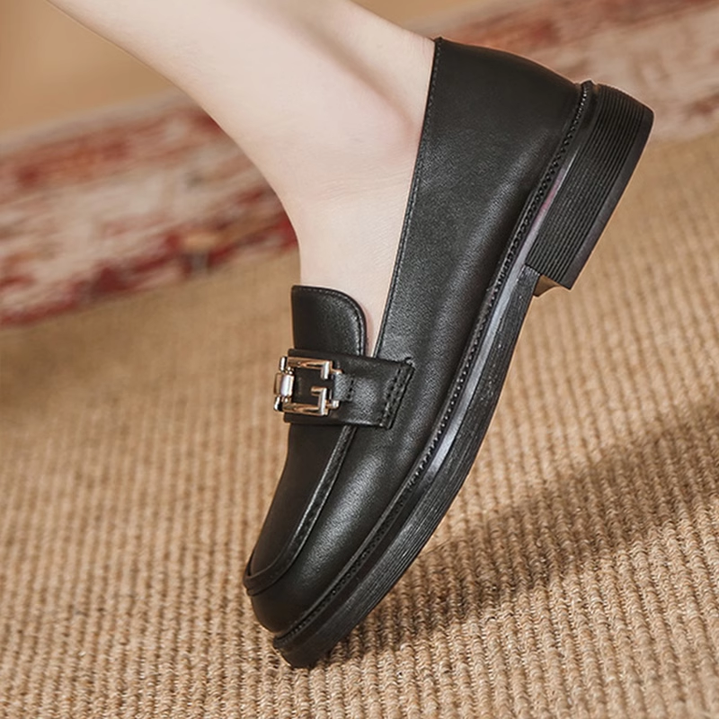 女2024新款 女黑色软皮软底小皮鞋 乐福鞋 一脚蹬单鞋 香菇来了