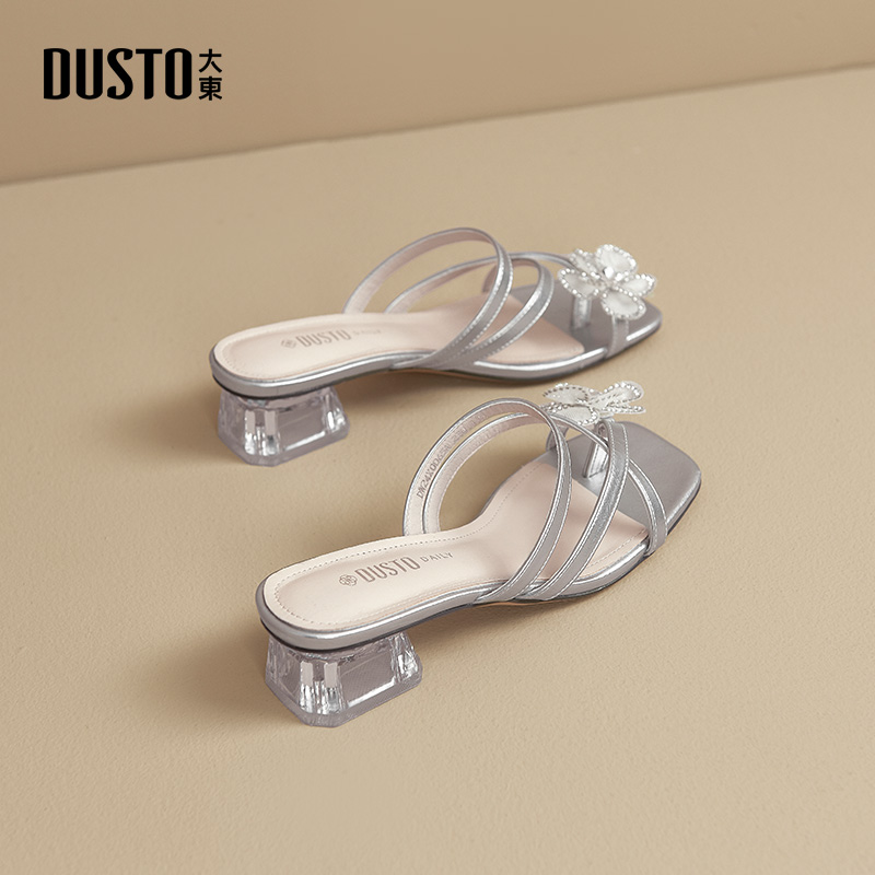 凉拖0065 银色水钻山茶花粗中跟爆款 〖WP〗大东拖鞋 女夏外穿女鞋