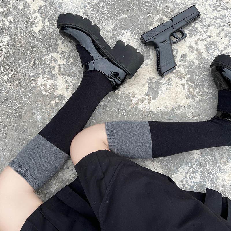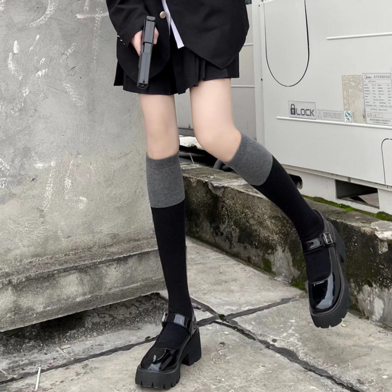 JKN压力小腿袜女春秋强压显瘦腿jk袜子黑色过膝高筒半中筒长筒袜