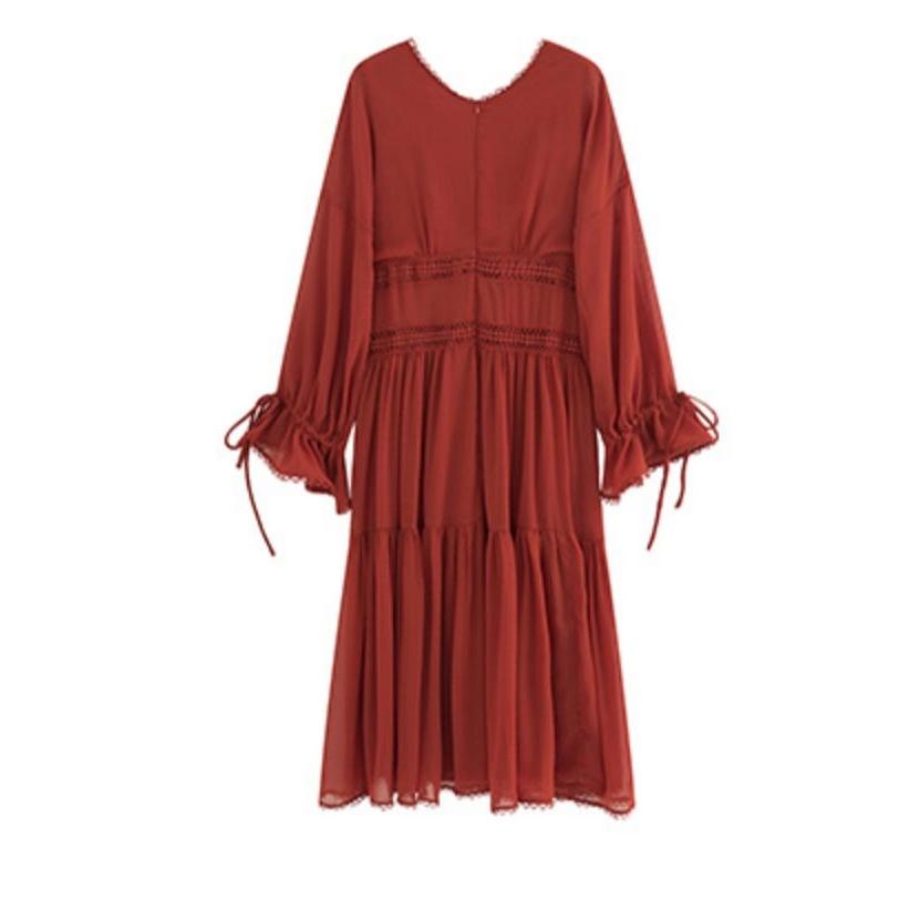 DPLAY2025年秋季 气质复古订婚礼服敬酒服回门服红色连衣裙女长裙