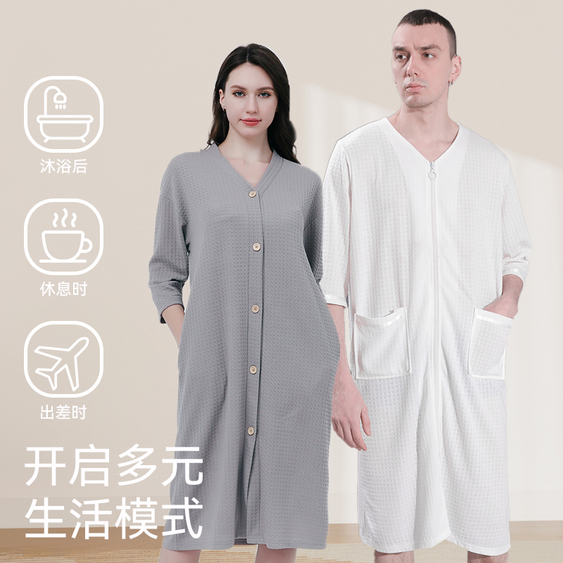 情侣孕妇睡袍女薄款 睡衣女浴衣 透气吸水毛巾料洗澡浴袍女宽松大码