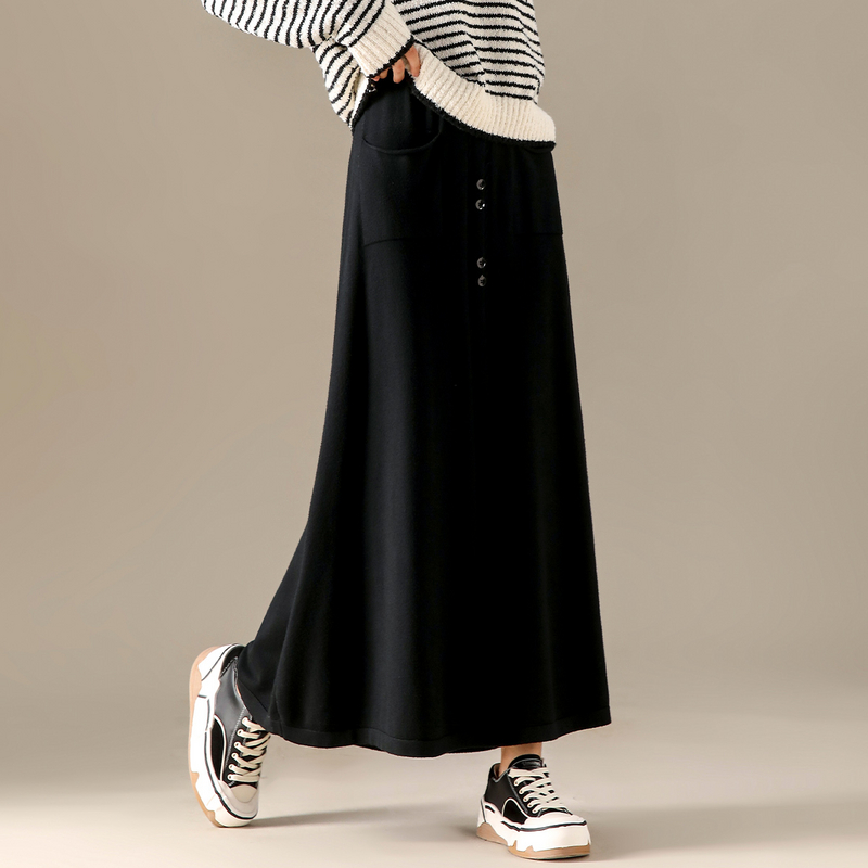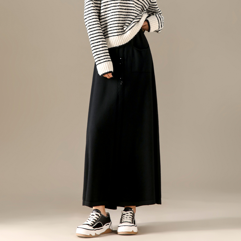 裙子女款 YD真维斯女装 新品 2025春季 显瘦黑色淑女长裙 通勤半身裙