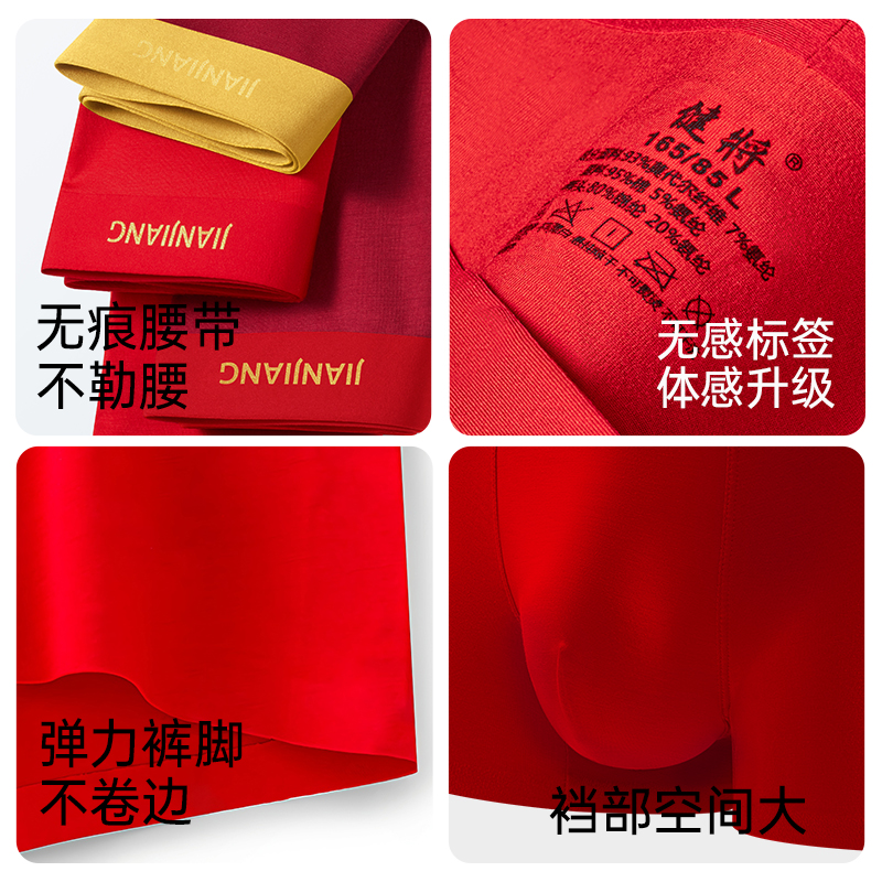 衩春夏新款 莫代尔红色裤 纯棉裆男式 四角裤 健将本命年男士 大码 内裤