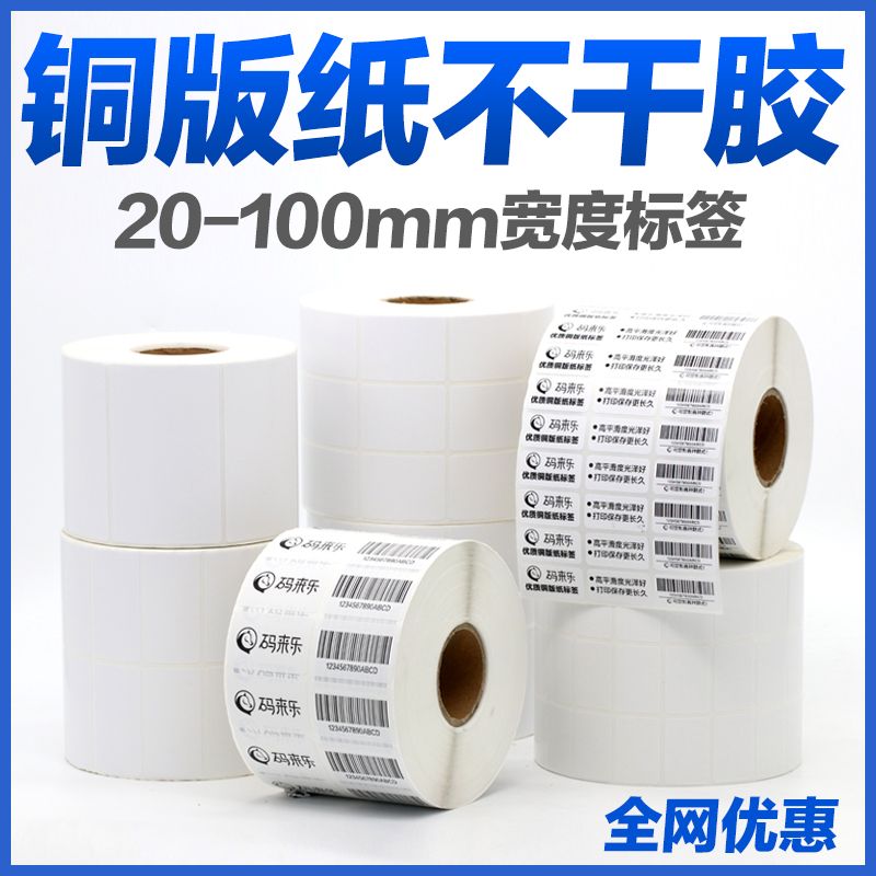 纸不干胶标签打印纸32 铜版 贴纸撕不破标签打印条码 100铜板条码 纸卷筒标贴碳带铜板