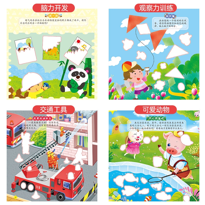 6岁儿童专注力思维训练贴纸书蒙氏数学幼小衔接公主换装 幼儿园贴纸书专注力训练看图识字全脑开发 儿童益智专注力贴纸书