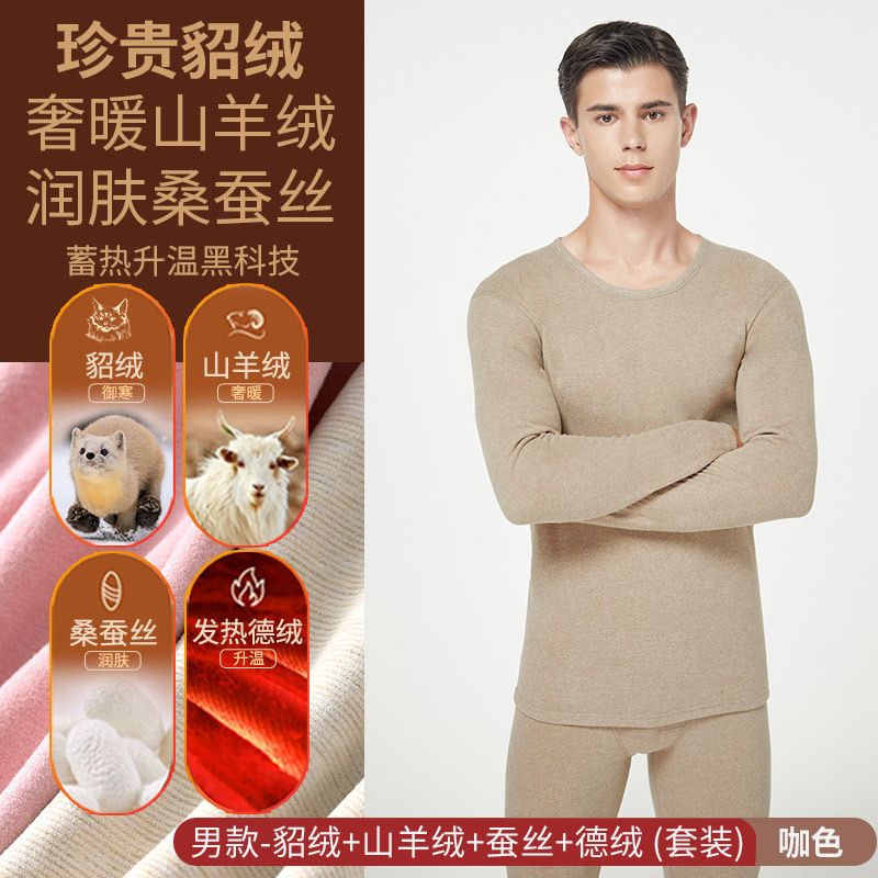 保暖套装 俞兆林7A抗菌羊绒蚕丝贴片男女同款 香菇双十一