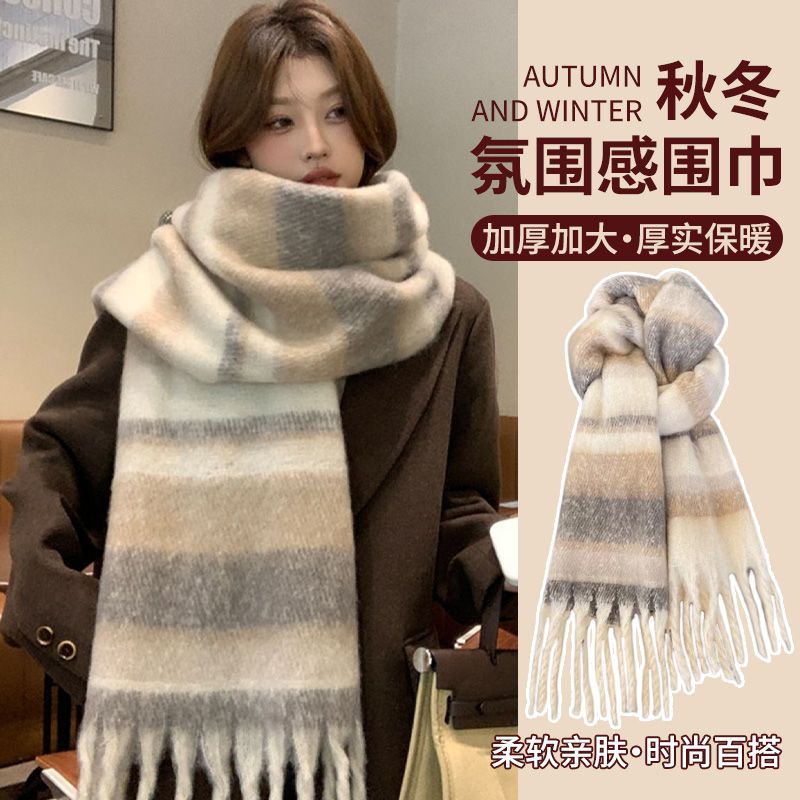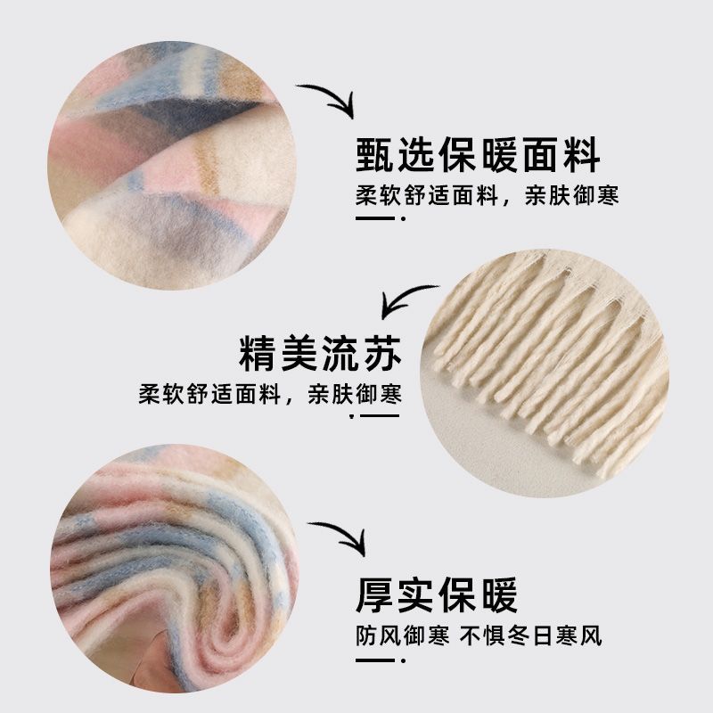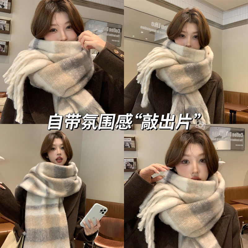 2025新款 加厚披肩保暖学生围脖情侣 海马毛格子高级氛围感围巾韩版
