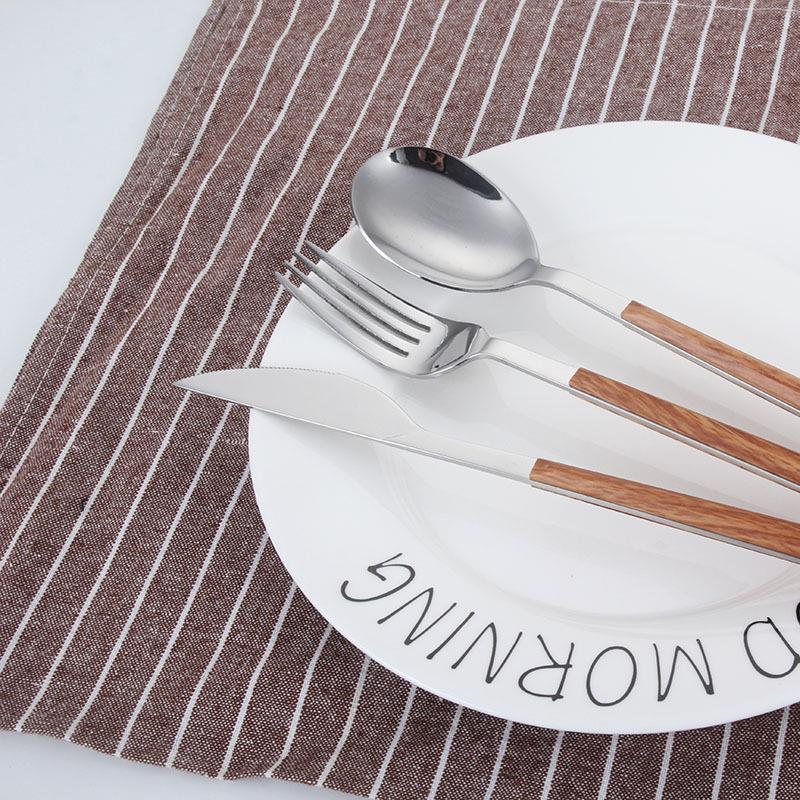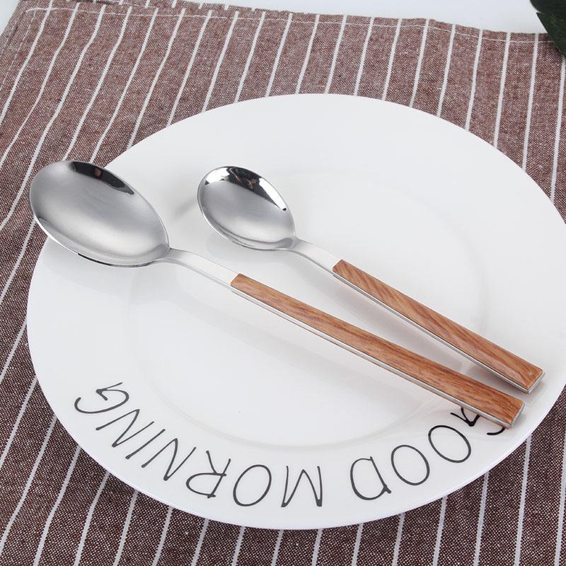 热销仿木纹不锈钢餐具西餐牛排刀叉勺套装 勺直销定制 韩式