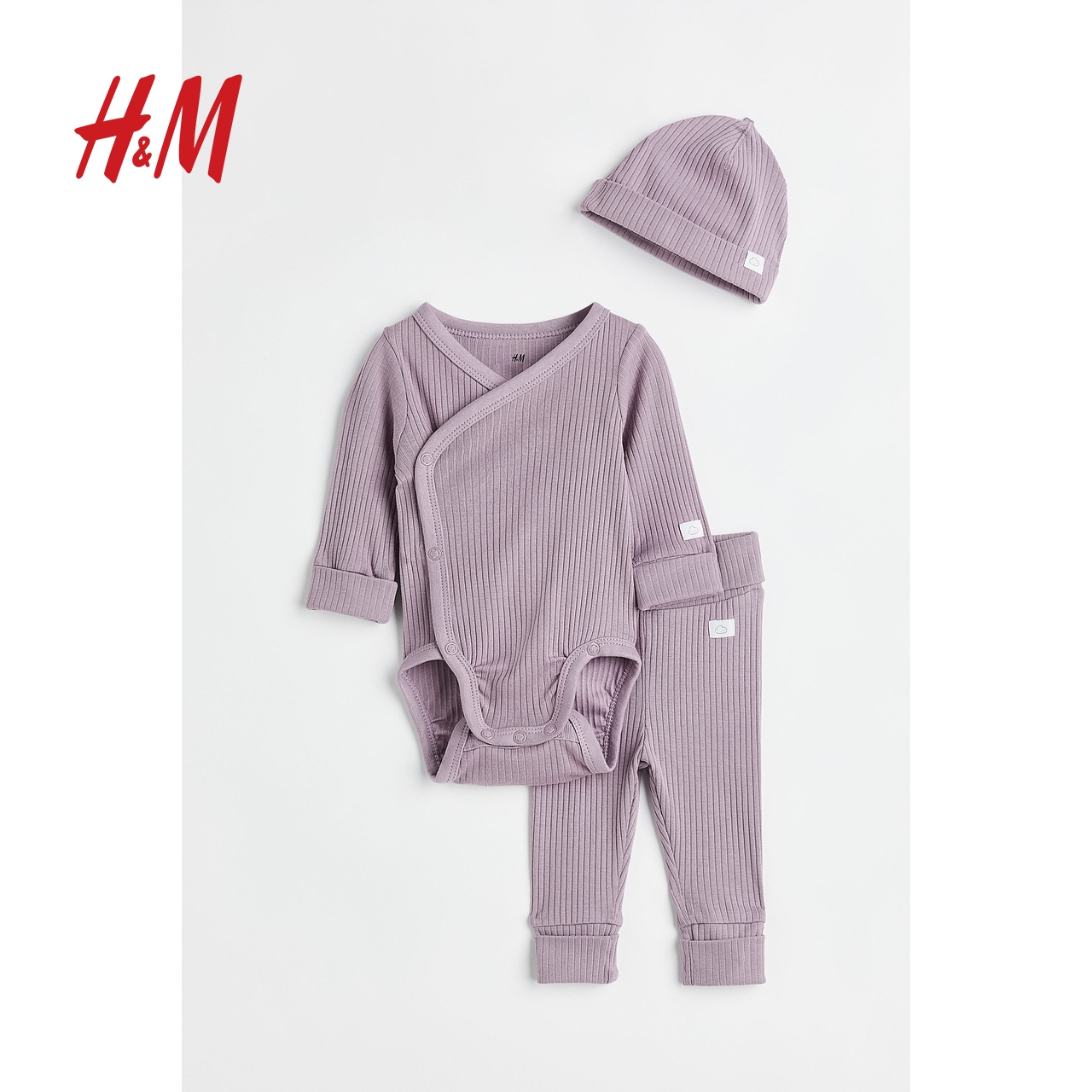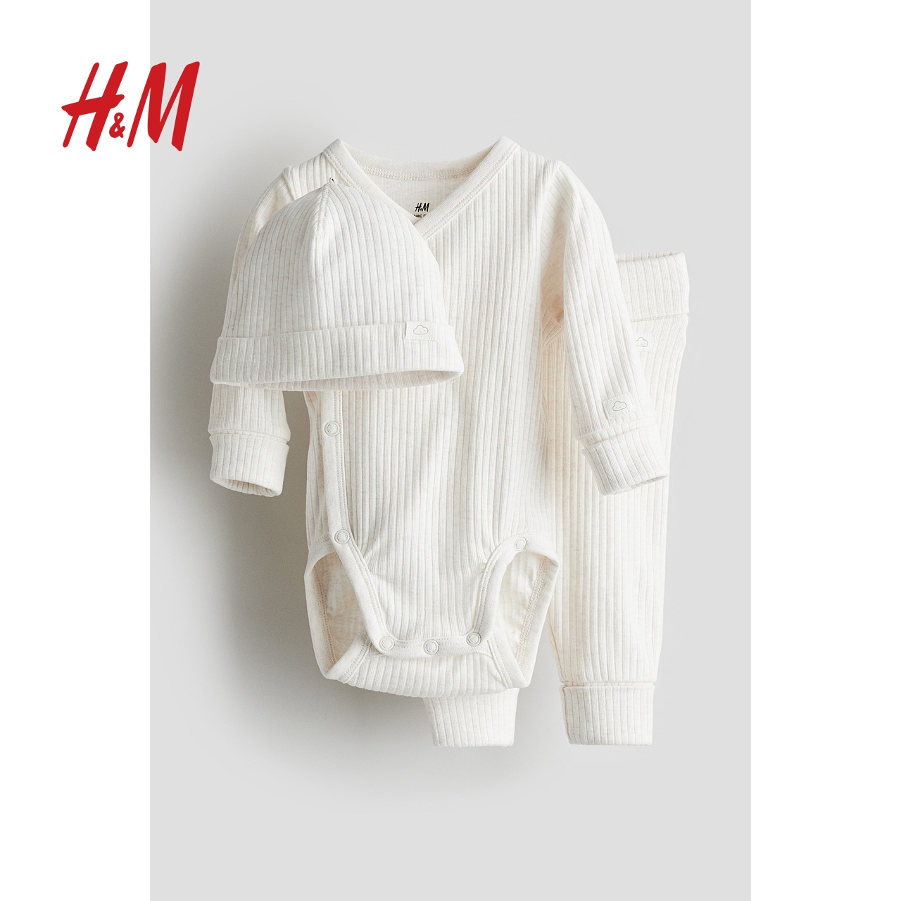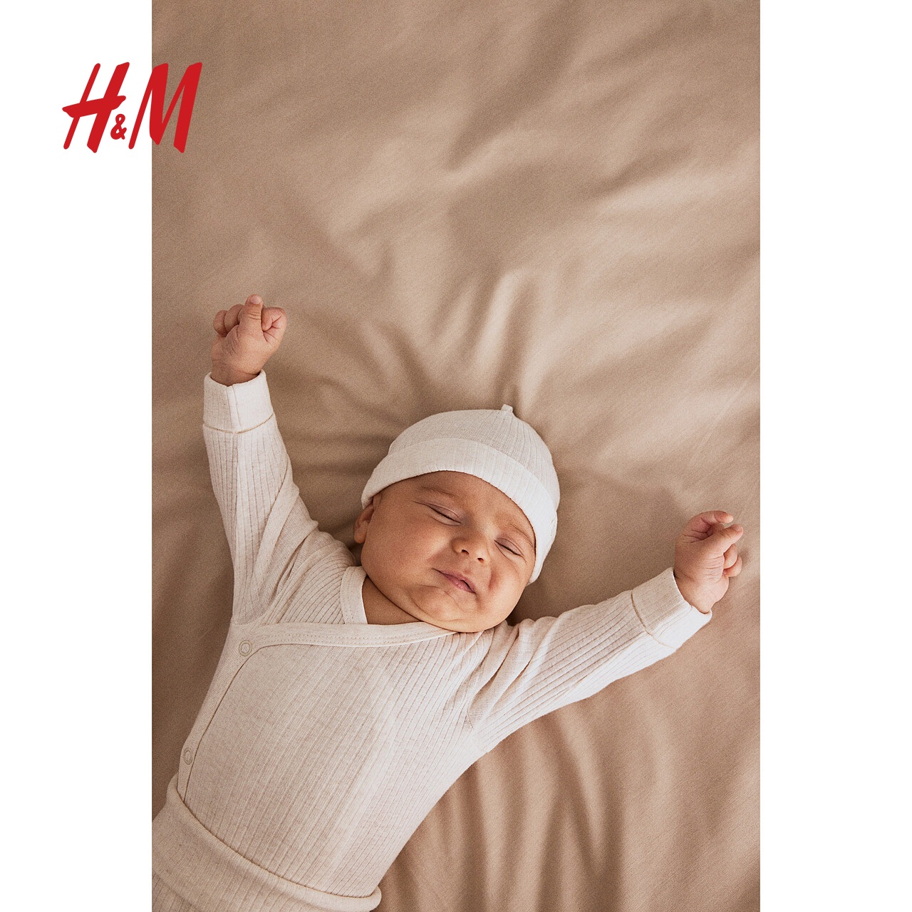 哈衣长裤 罗纹长袖 帽子尺寸可调0981900 新生儿男婴女婴套装 HM童装