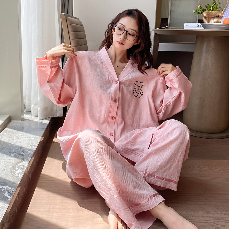 睡衣套装 纯棉春秋季 少女长袖 全棉高级感开衫 家居服 春秋款 芬腾新款