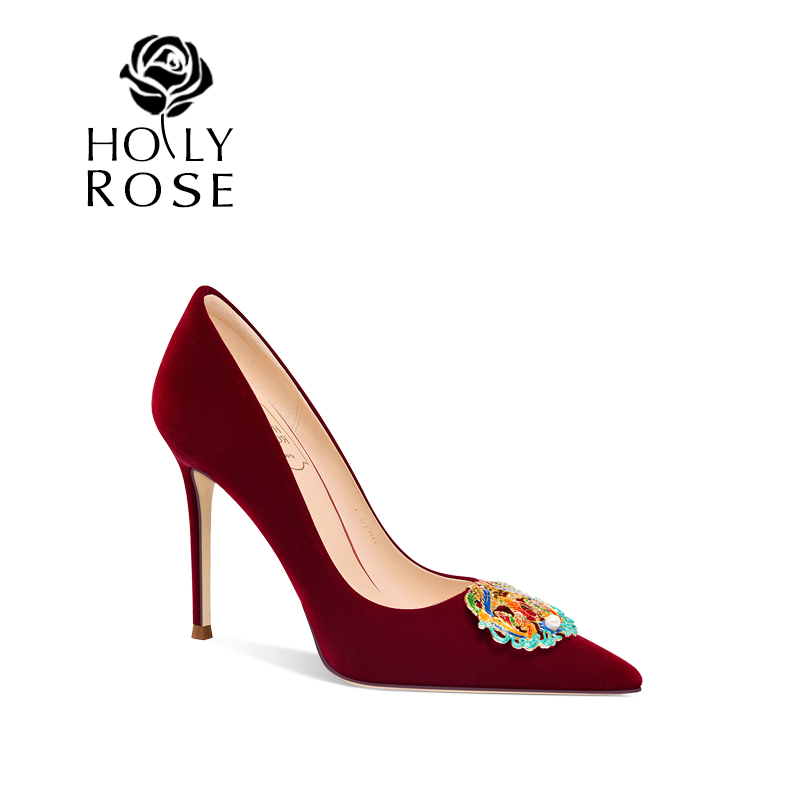 酒红色秀禾婚鞋 高跟鞋 新娘鞋 敬酒鞋 女婚纱两穿礼服鞋 HolyRose中式