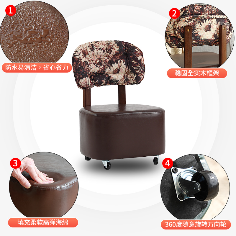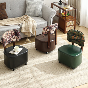 实木溜溜凳家用客厅中古风沙发凳滑轮凳子换鞋 凳矮凳休闲靠背椅子