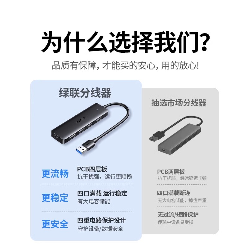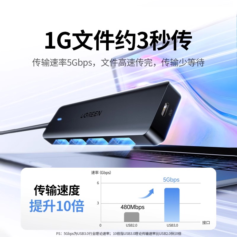 绿联usb拓展坞插头多口一分二集分线器typec延长线hub3.0外接u盘带供电转接头转换器笔记本电脑多接口扩展器