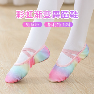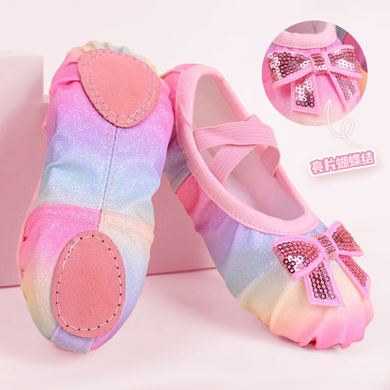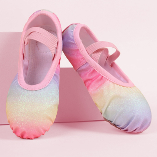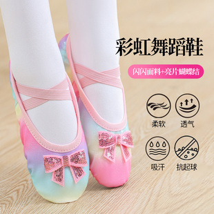中国舞练功鞋 儿童舞蹈鞋 软底鞋 女童芭蕾舞鞋 蓝色水晶 公主风彩虹鞋