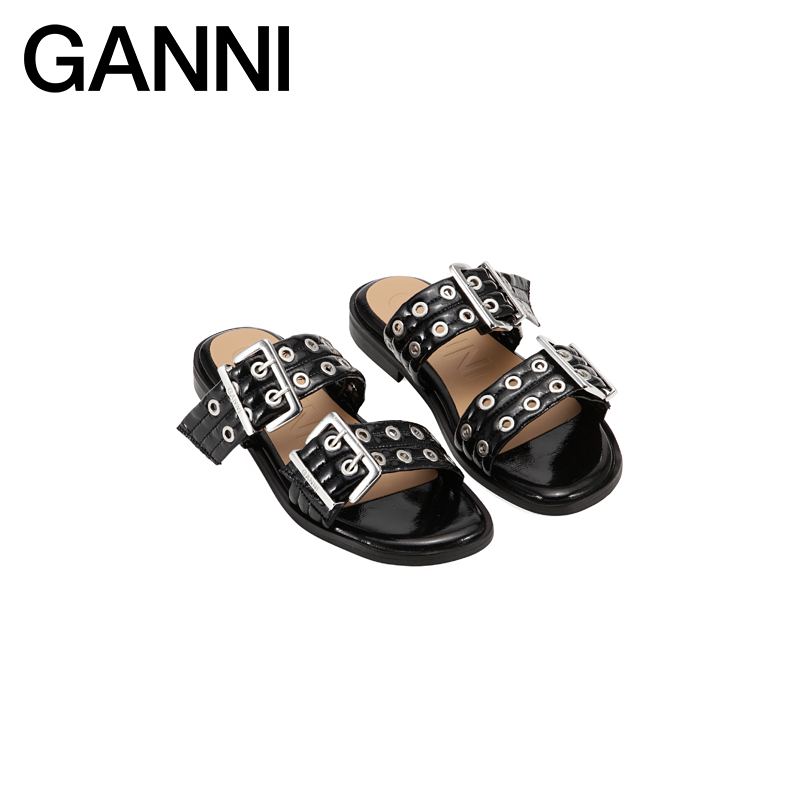 S2664099 平底凉鞋 GANNI女鞋 双搭扣系带孔眼露趾时尚