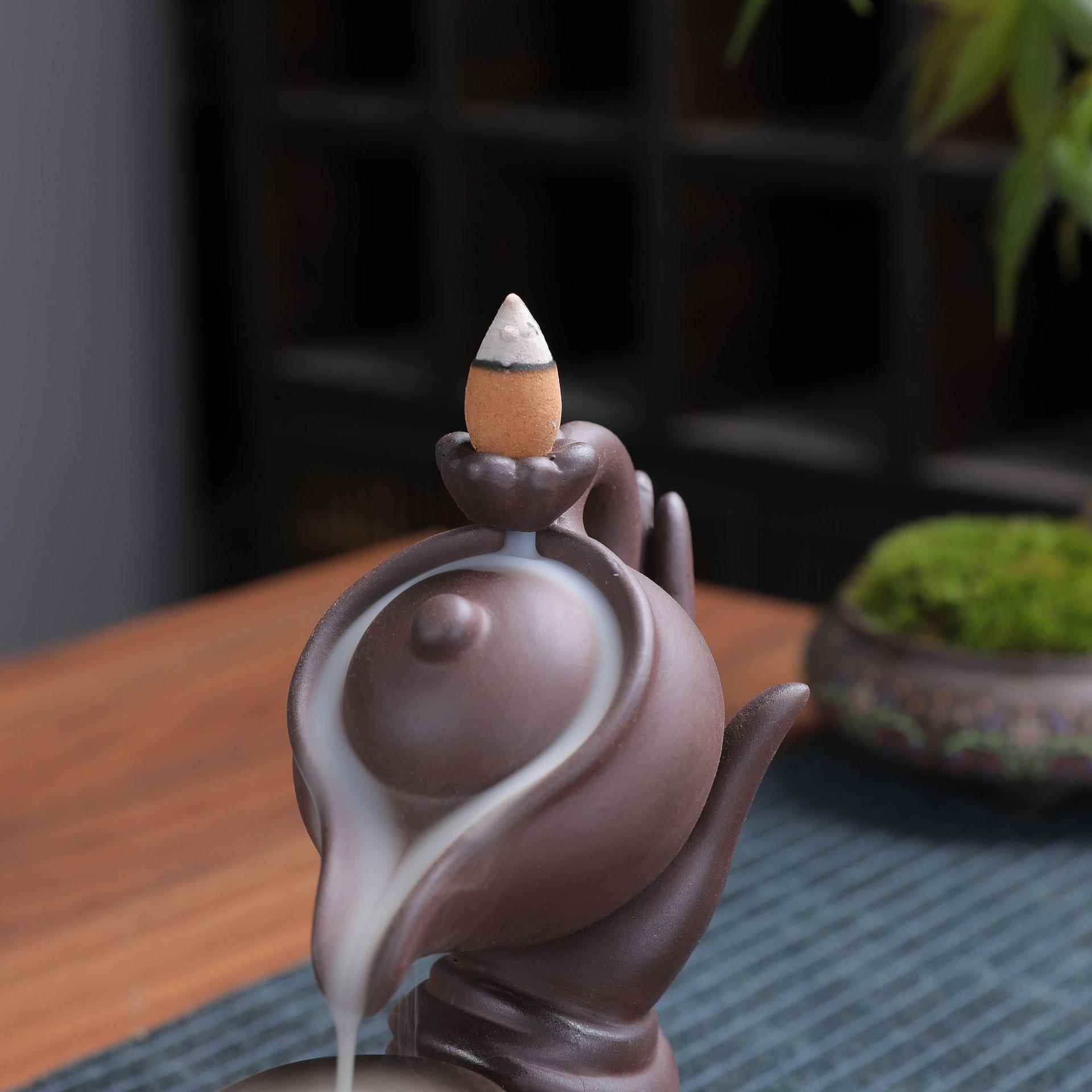 创意紫砂倒流香炉仿古陶瓷香薰炉禅意檀香炉家用室内香道家居摆件
