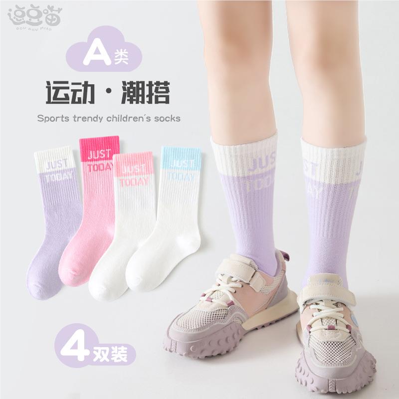 女童长筒袜子运动棉袜学生高筒袜小腿袜春夏季 男女童长袜字母潮袜