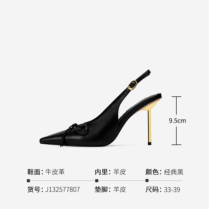 新款 女2025春季 JOOC玖诗包头凉鞋 蝴蝶结气质尖头高跟鞋 大女主