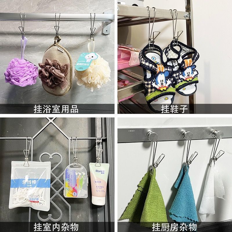 不锈钢长尾挂钩夹子浴室毛巾多功能防滑固定夹洗面奶抹布金属挂夹