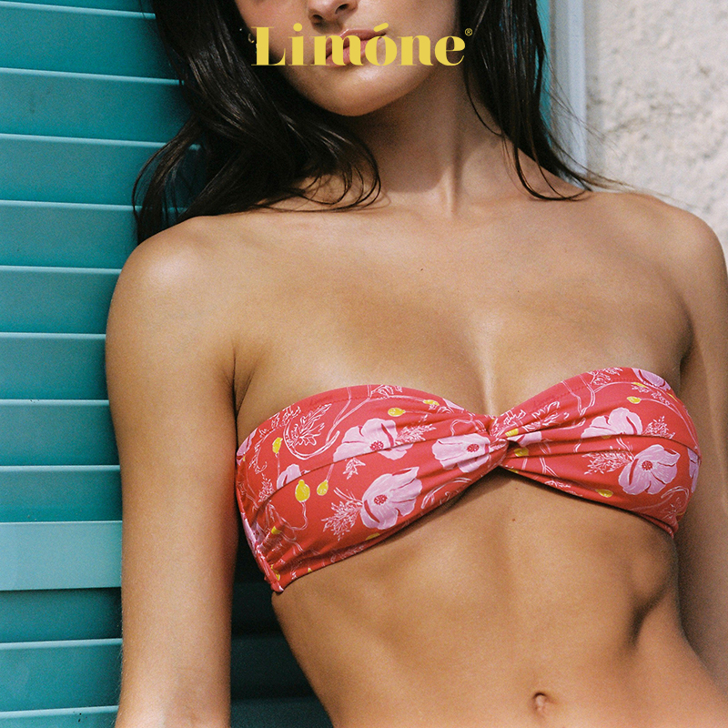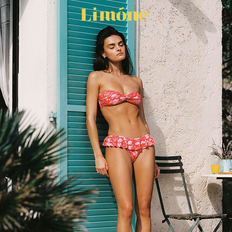 泳衣 荷叶边抹胸分体式 Limone2025新款 高级感红色比基尼度假风泳装