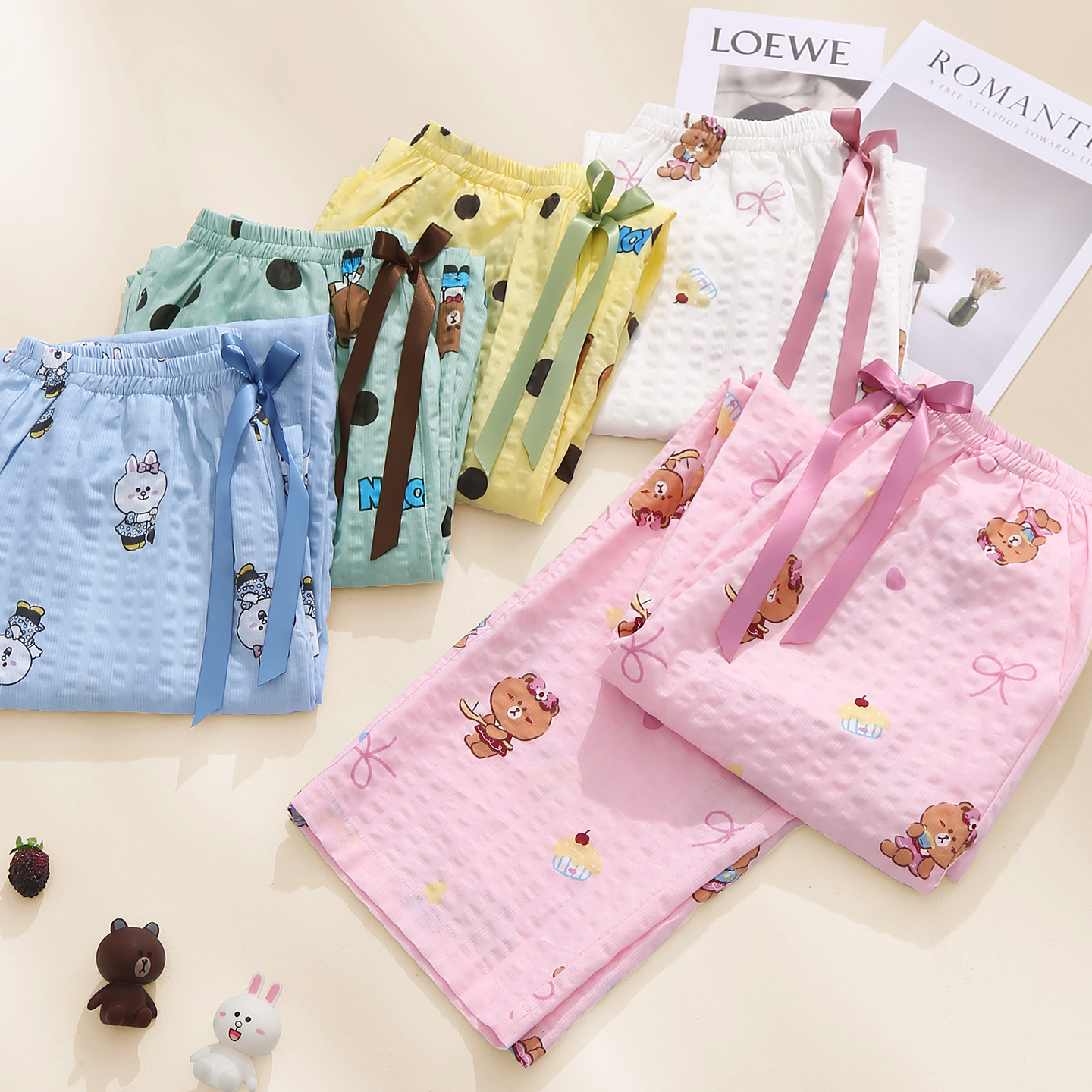 长裤 可爱布朗熊女款 大码 芬腾女睡裤 单裤 梭织棉透气薄款 家居裤 夏季