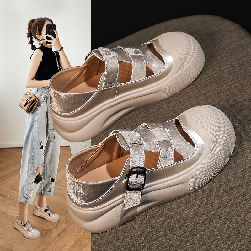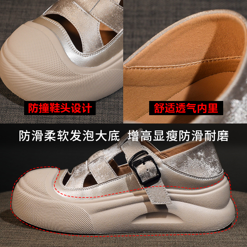 女包头镂空透气外穿厚底两穿凉拖 超火增高罗马凉鞋 2025年夏季 新款