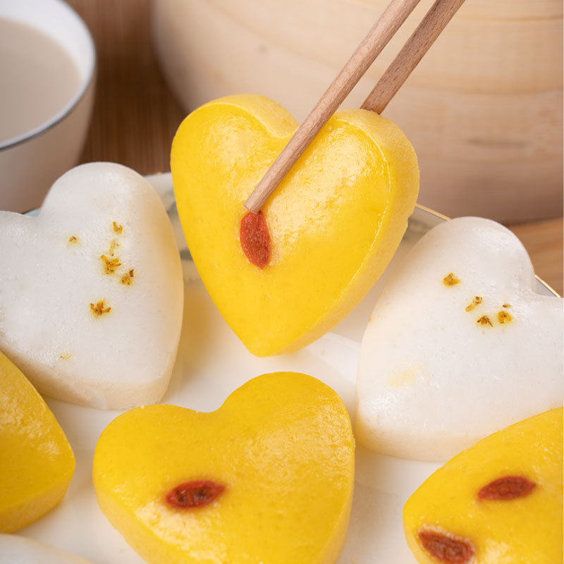 金玉良缘爱心形双色米糕发糕儿童早餐半成品加热即食白糖桂花糕点
