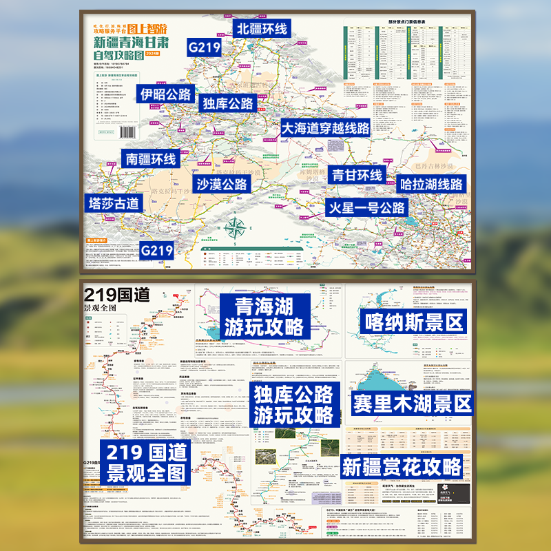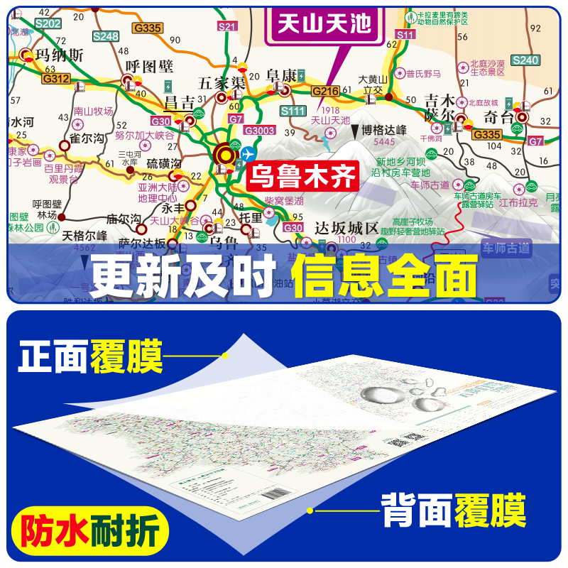 约86×57厘米南疆北疆伊犁青甘环线经典 新疆青海甘肃自驾攻略图 旅游区域全覆盖旅游线路丰富高清印刷双面覆膜防水耐折 2025版