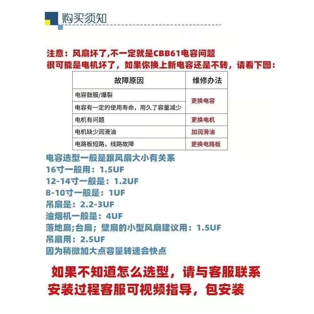 BM原厂全新CBB61 台扇电风扇电容 1.5UF450VAC油烟机电容落地扇