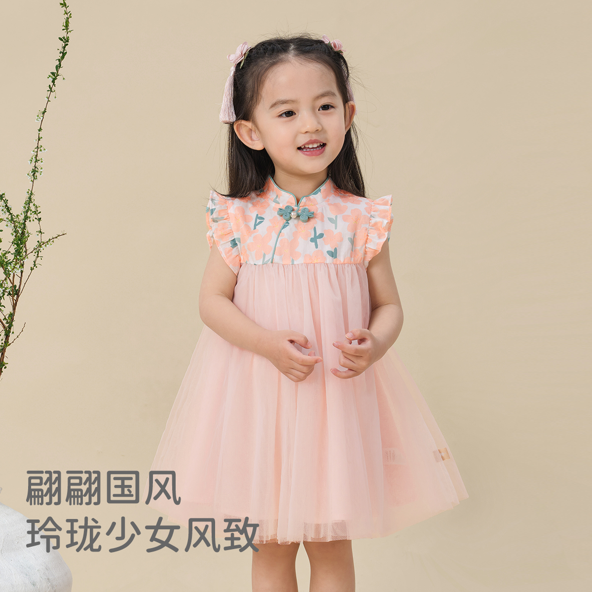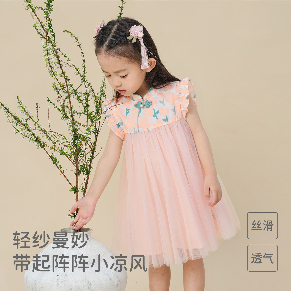 戴维贝拉女童国风连衣裙夏装 儿童汉服裙子宝宝公主裙 童装