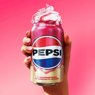 碳酸汽水 英国进口百事可乐无糖草莓奶油味可乐330ml 现货速发
