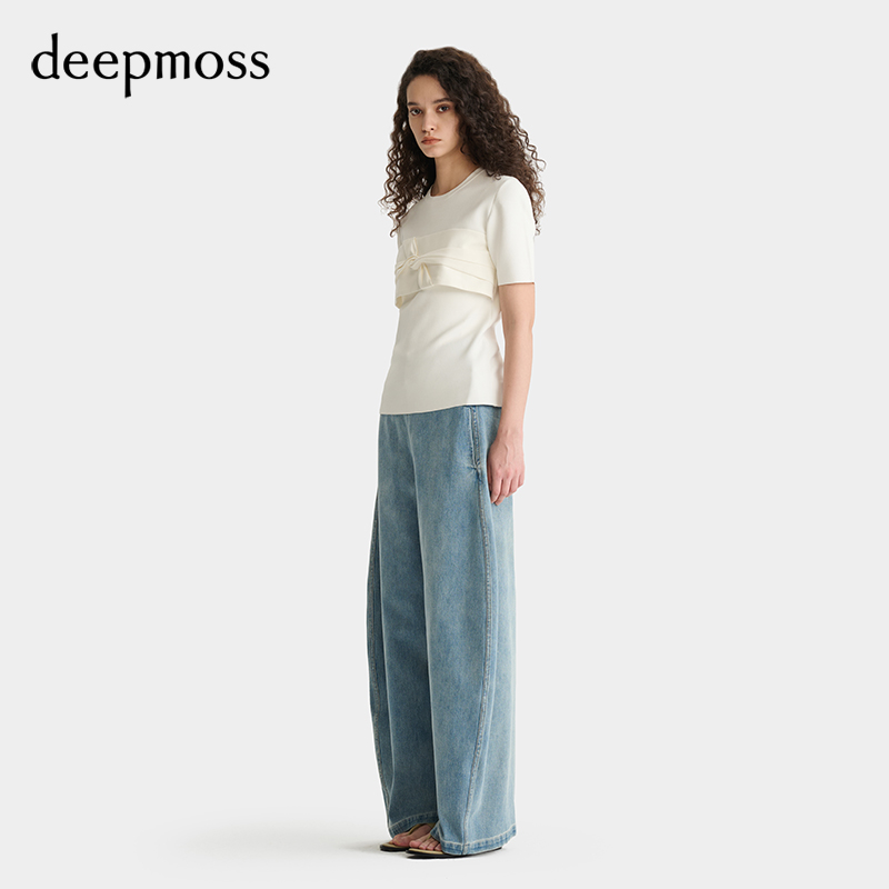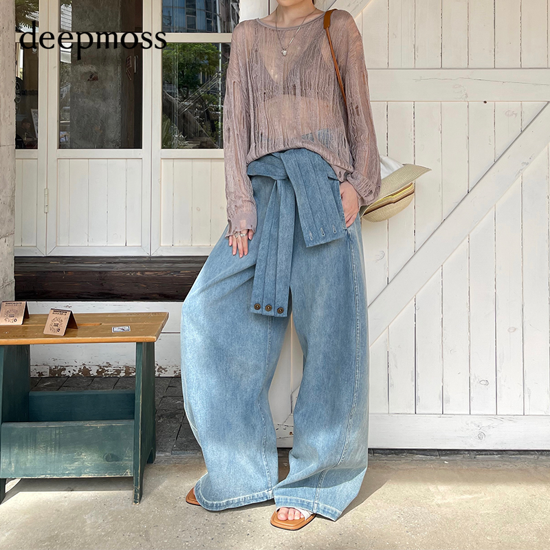 女士设计感交叠腰封弹力牛仔香蕉裤 2025秋冬新款 长裤 deepmoss