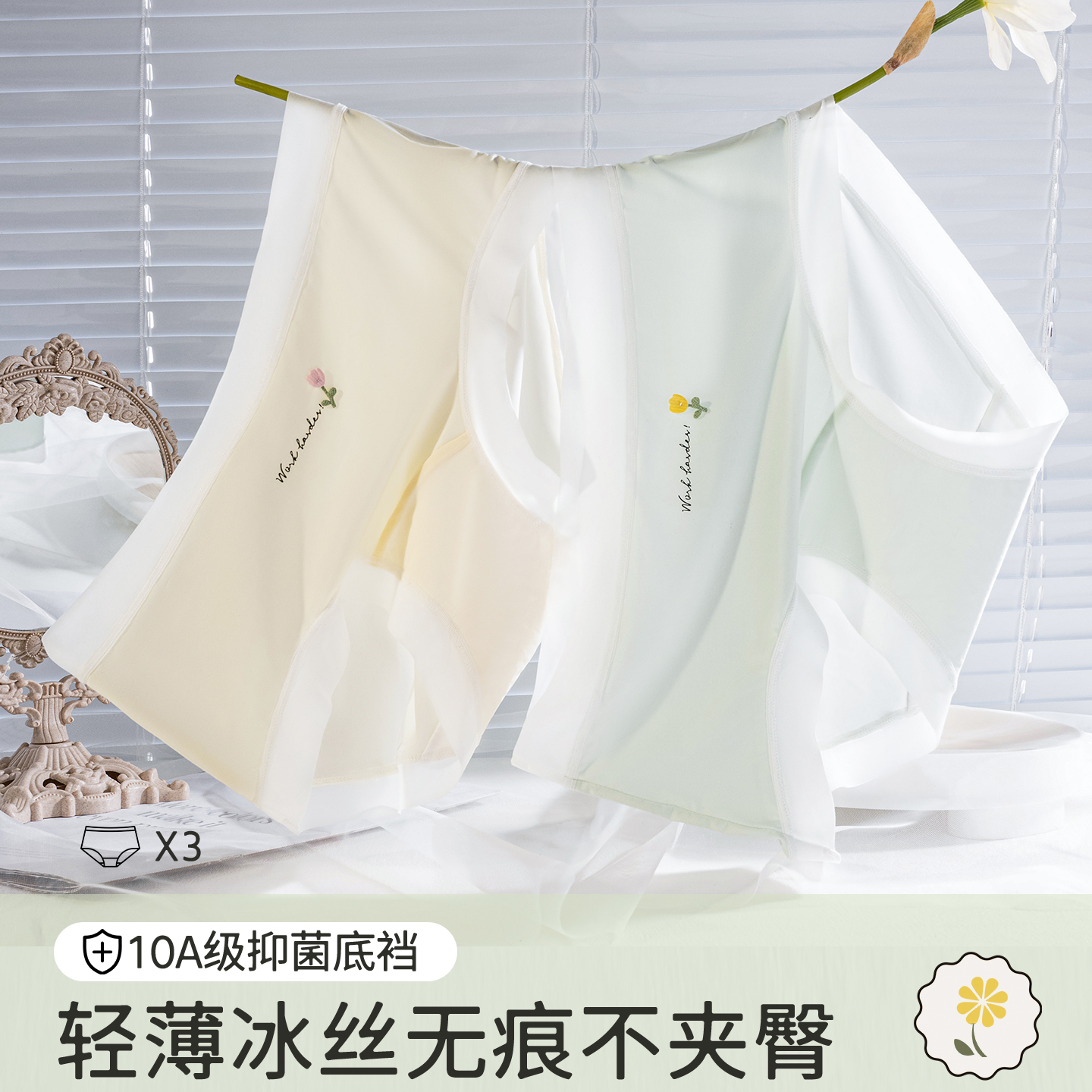 新款 夏季 女士纯棉全棉抗菌裆少女生无痕冰丝中腰三角裤 健丹鸟内裤
