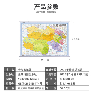 约1.1×0.8m 折叠地图 家居展览馆居家沙发办公室背景墙装 饰画 学生家用常备地图 2025新版 防水耐折 青海省地图挂图贴图
