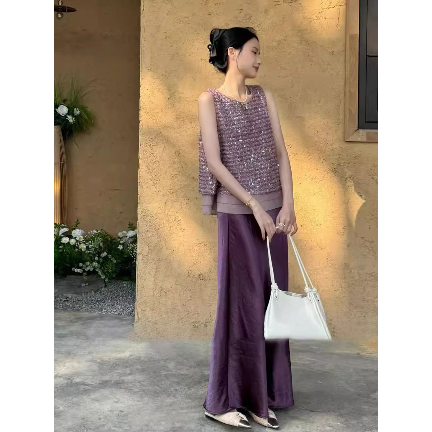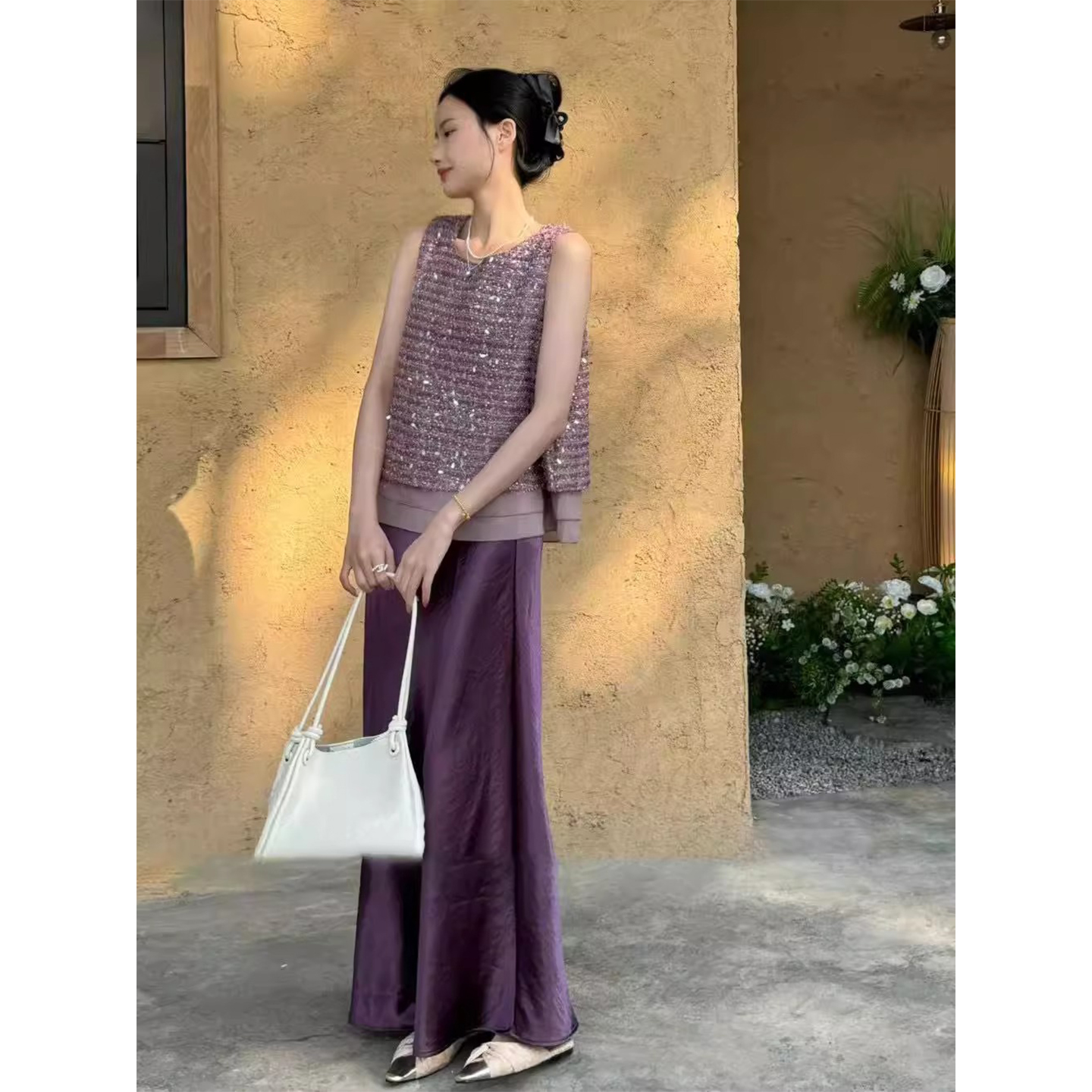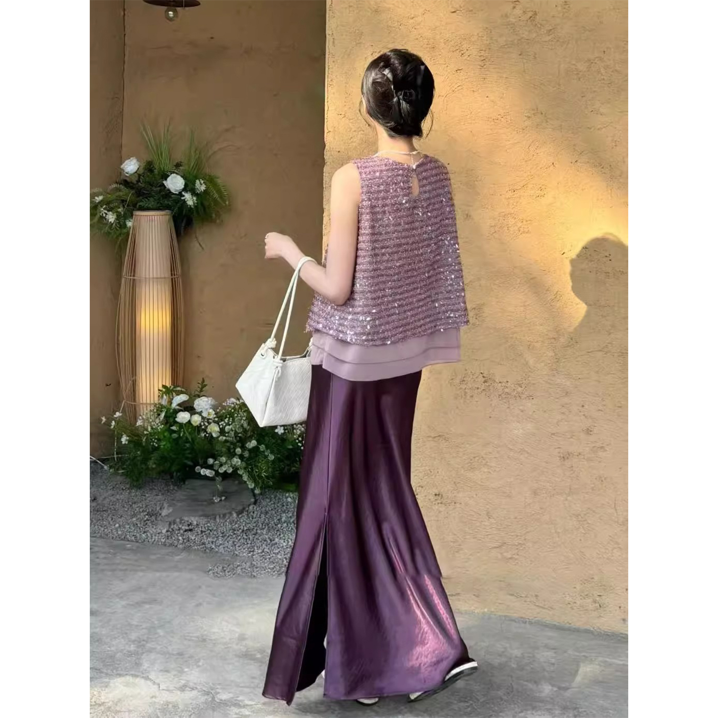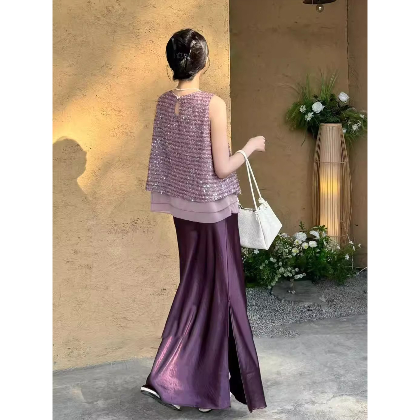 新中式 独特漂亮高级感紫色背心半身裙两件套 轻国风穿搭一整套夏季