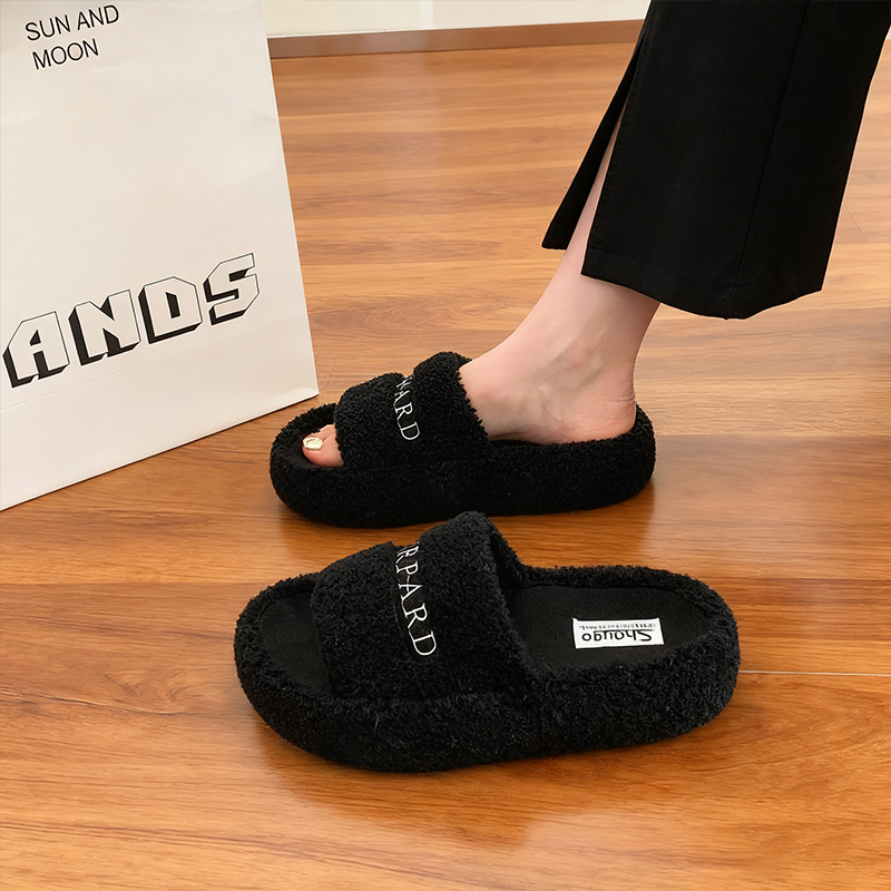一字拖毛毛鞋 加绒加厚东北大棉鞋 子棉拖 新款 厚底雪地靴女2025冬季
