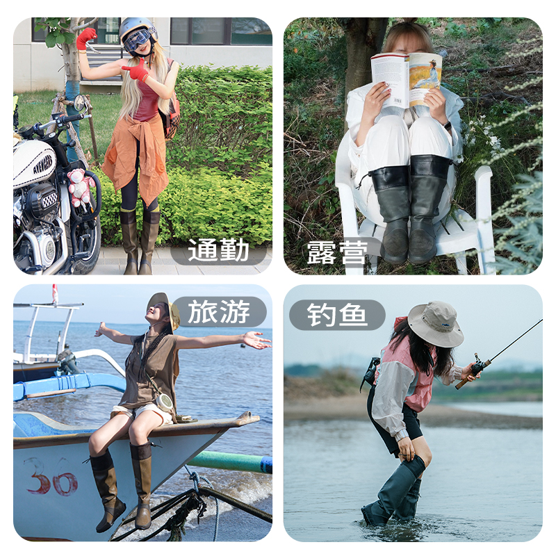 高筒防水防滑徒步不累脚雨靴长筒胶鞋 户外轻便溯溪水鞋 女新款 雨鞋