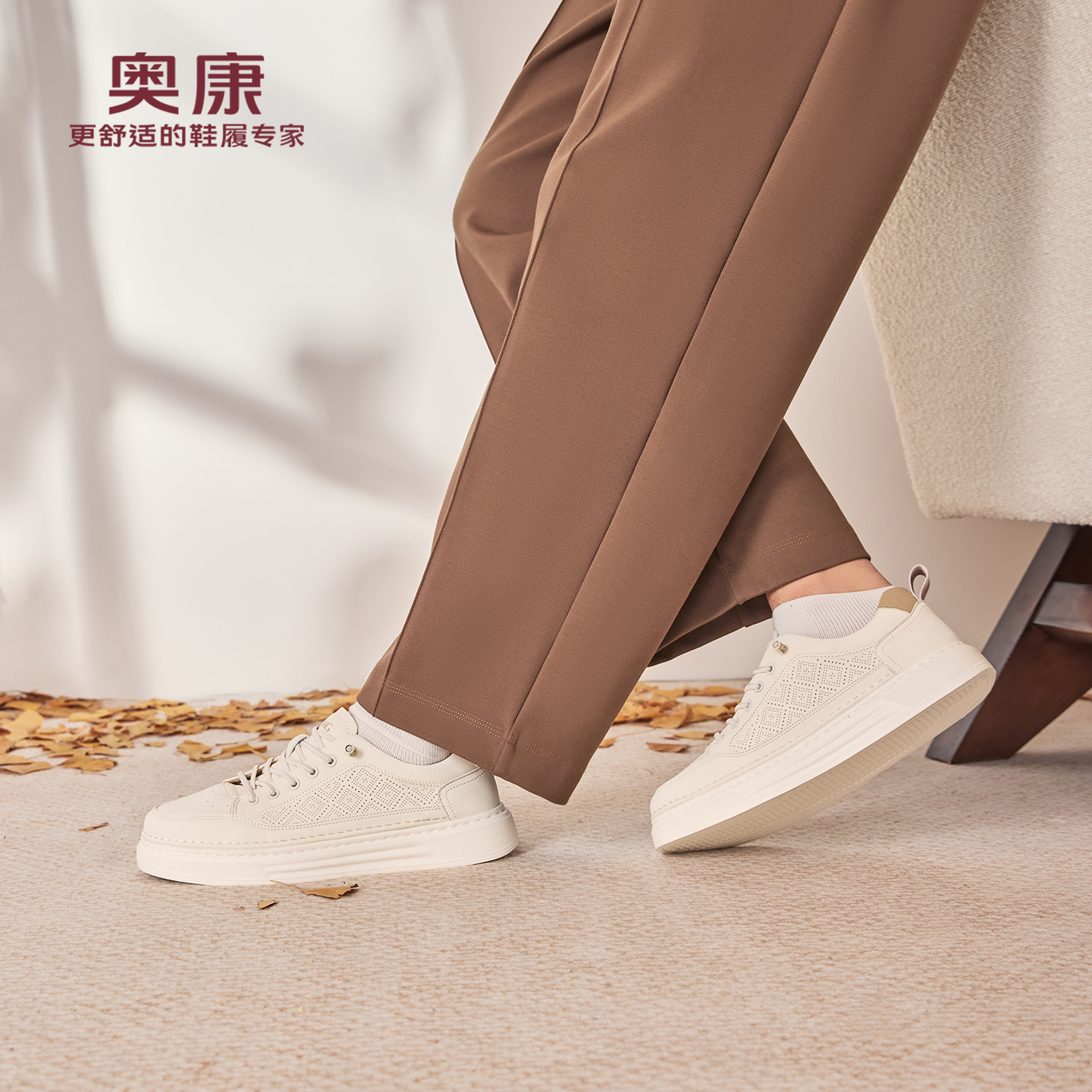 秋季 女鞋 新款 厚底增高面包鞋 子 特步榛果可可 百搭休闲运动鞋 板鞋