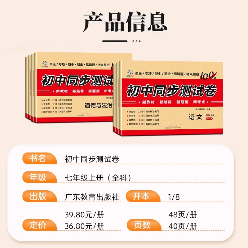 初中同步测试卷道德与法治七7年级上册配RJ版 批阅试卷初中同步测试卷冲刺100分教辅巩固基础知识突破重点难点试卷 教材同步智能扫码