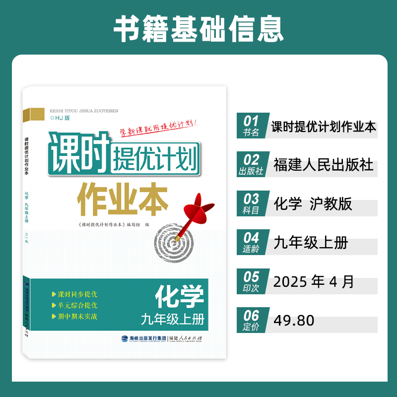 2025秋新课时提优计划作业本9九年级上册化学沪教人教版 期中末综合夯实强化附赠学情测试卷和答案 同步初三教材预复习随堂练习单元