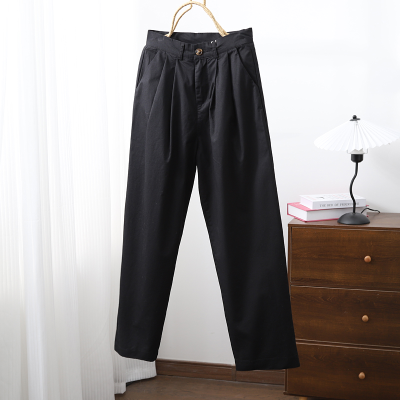女春秋新款 休闲直筒慵懒松弛感裤 高腰垂感窄版 裤 子 西装 黑色阔腿裤