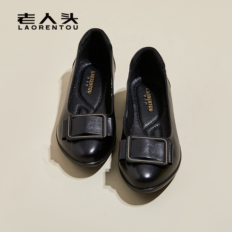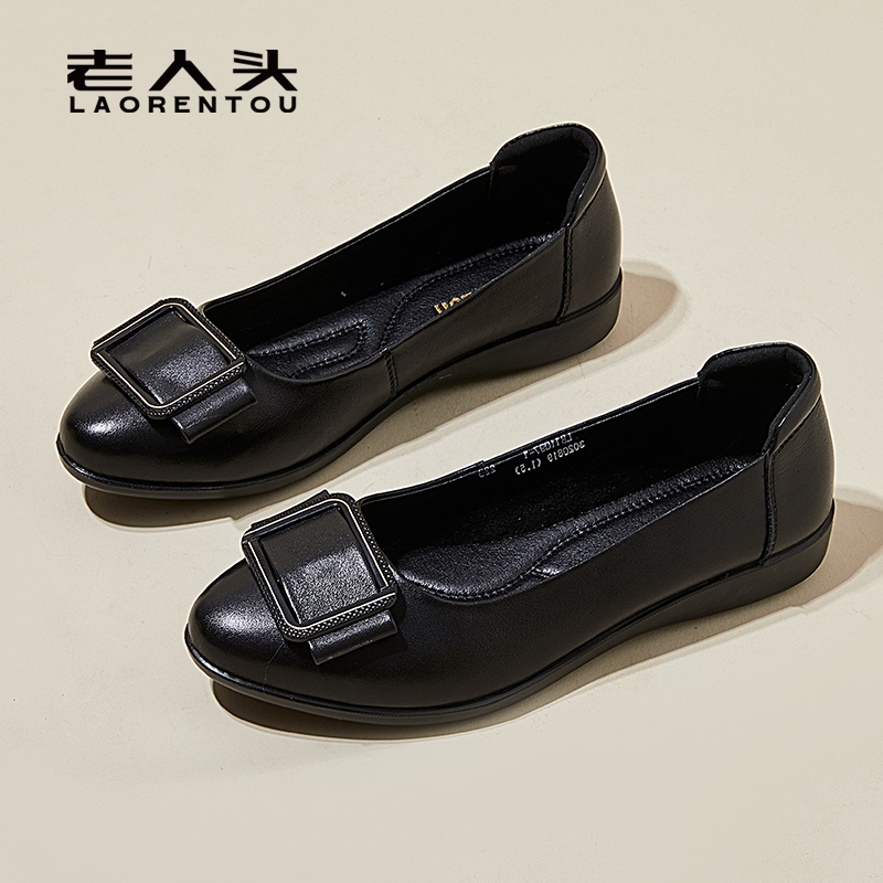 中老年工作单鞋 老人头女鞋 舒适软底皮鞋 子2025春夏新款 真皮妈妈鞋