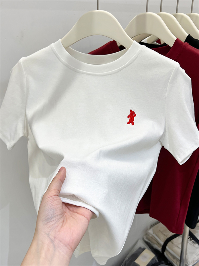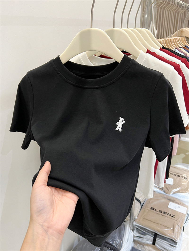 减龄漂亮洋气刺绣修身 2023新款 百搭上衣女体恤 t恤女夏季 欧货短袖