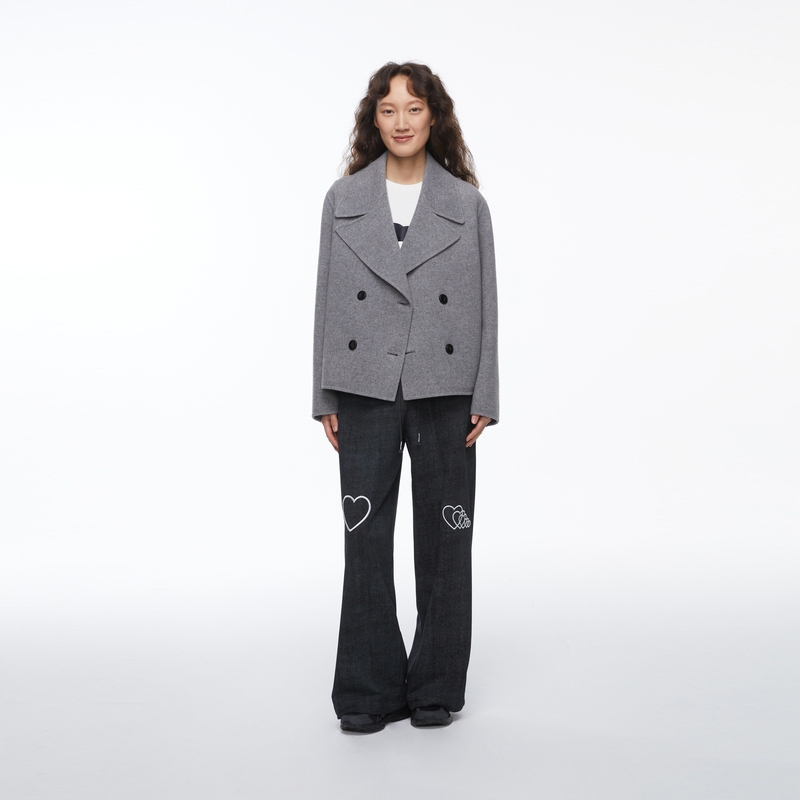 图曼朵灰色双面呢羊毛大衣女秋冬新款 毛呢短外套 高级感小个子短款
