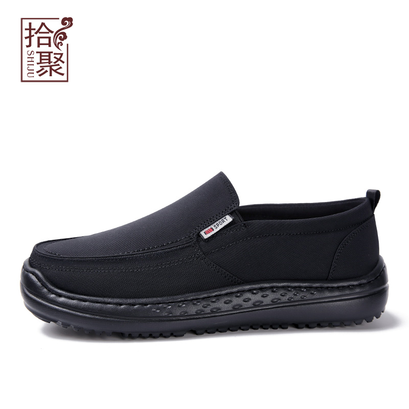 男夏防滑运动鞋 老北京布鞋 布鞋 透气休闲防臭一脚蹬黑布鞋 手工 男款