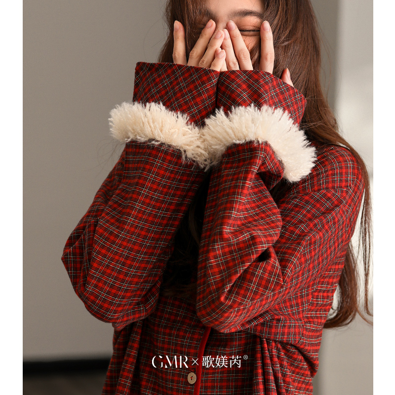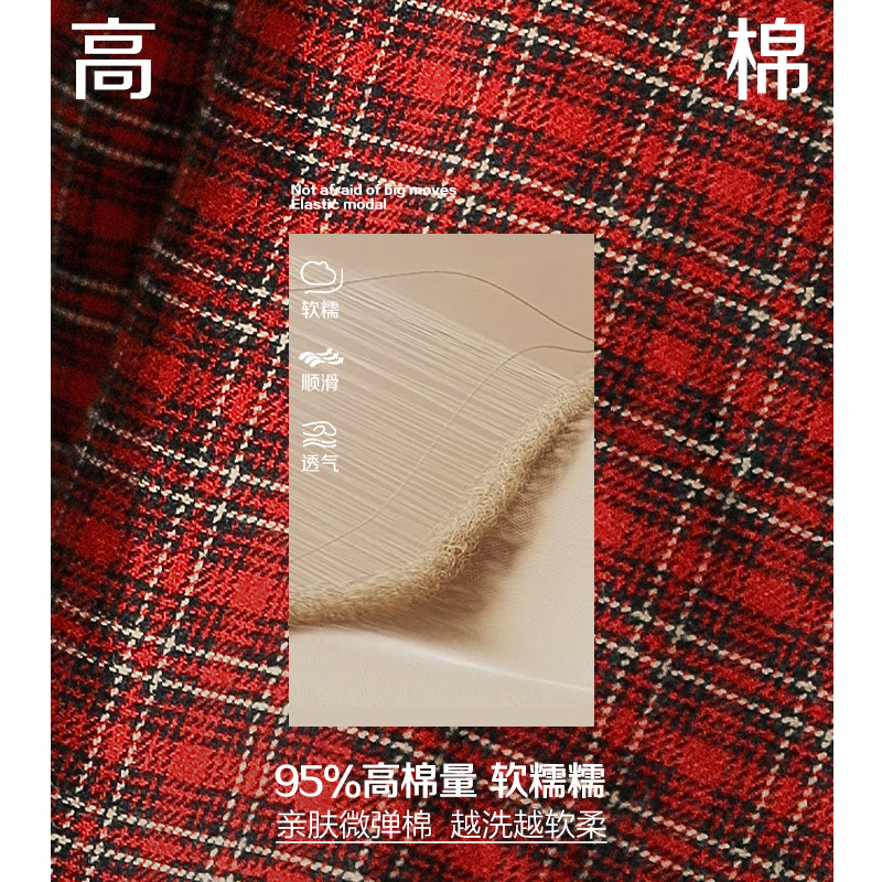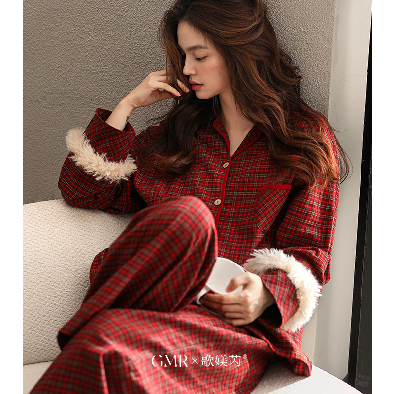 套装 长袖 本命年红色结婚格子家居服大码 2025新款 纯棉睡衣女春秋季