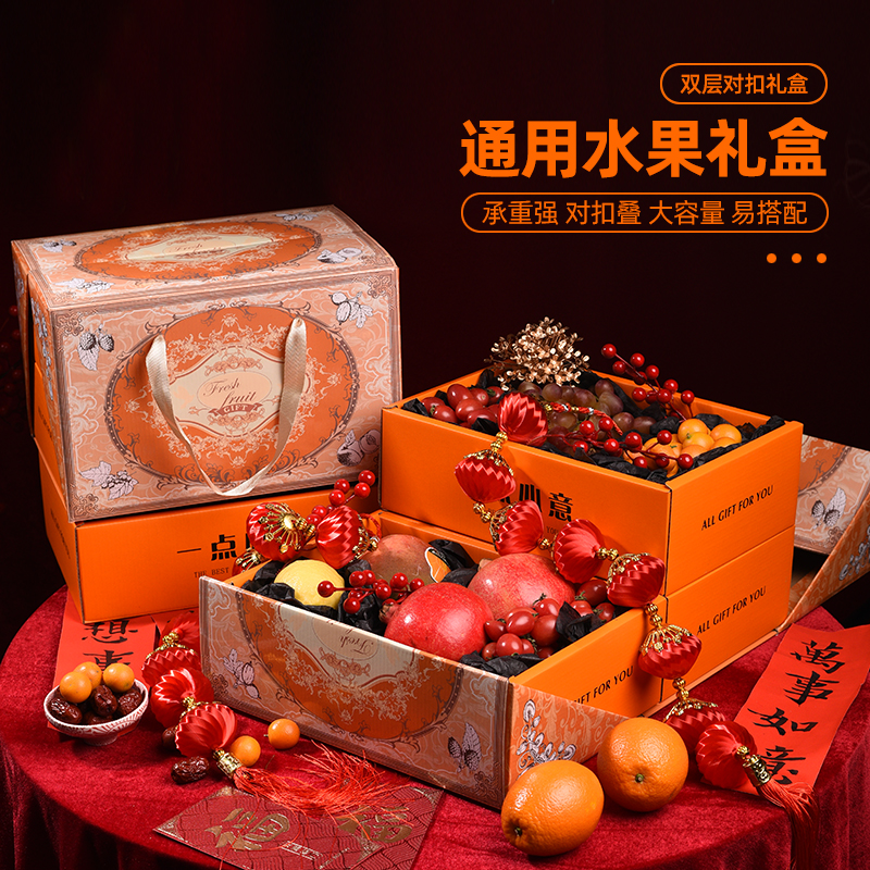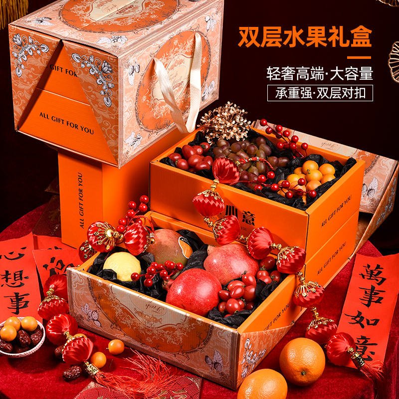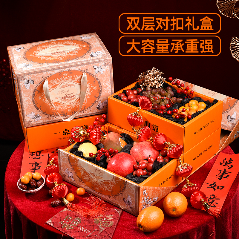 双层对扣水果包装 盒橙色透明盖橙子苹果通用鲜花混搭礼盒空盒子