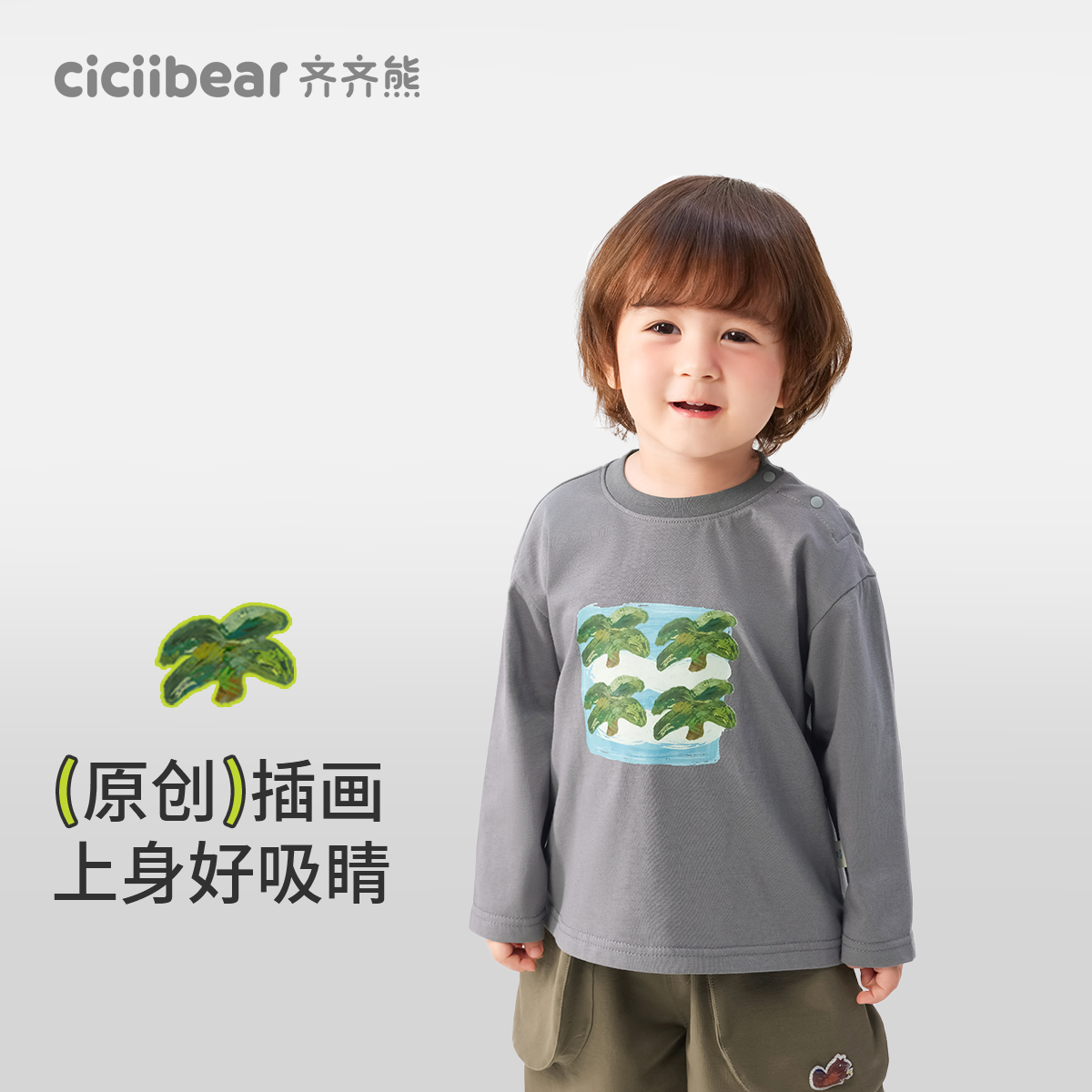 新款 T恤儿童圆领上衣25秋装 齐齐熊宝宝长袖 男童 抗菌吸湿排汗